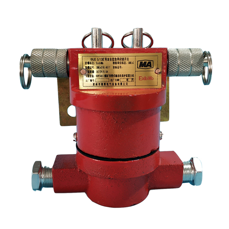 1用途及適用范圍: KHJ0.5/12礦用本安型急停閉鎖開關(guān)(以下簡(jiǎn)稱急停開關(guān))為礦用本質(zhì)安全型電氣設(shè)備, 該急停開關(guān)適用于煤礦井下、露天煤礦、選煤廠等工作場(chǎng)所,作為帶式輸送機(jī)輸送帶急停閉鎖檢測(cè)之用。
